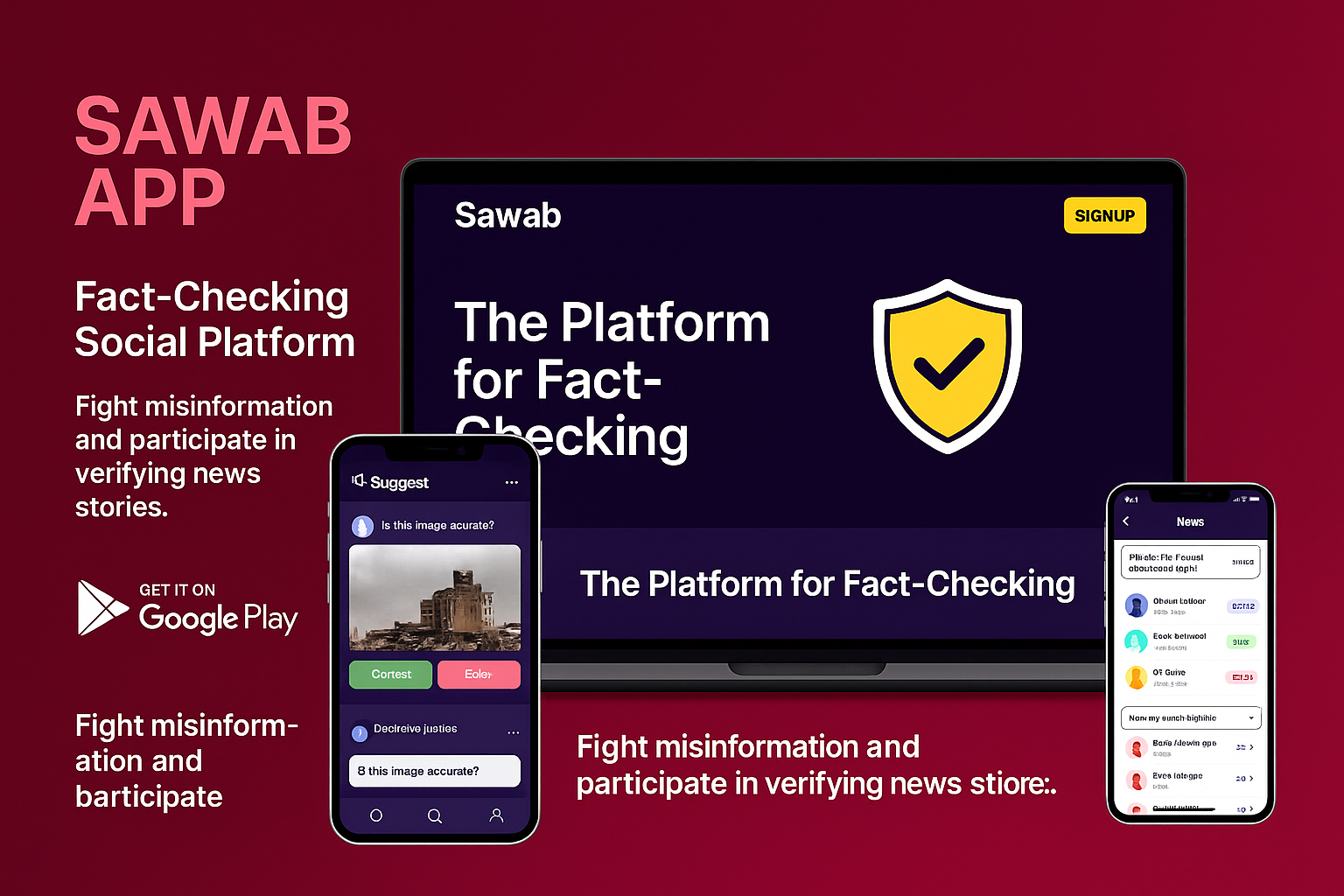 Sawab is a civic-tech mobile platform developed to combat misinformation, promote fact-checking, and foster digital awareness across Arabic-speaking communities. The app allows users to post content, verify information, and collaborate with a trusted network of journalists, academics, and researchers.